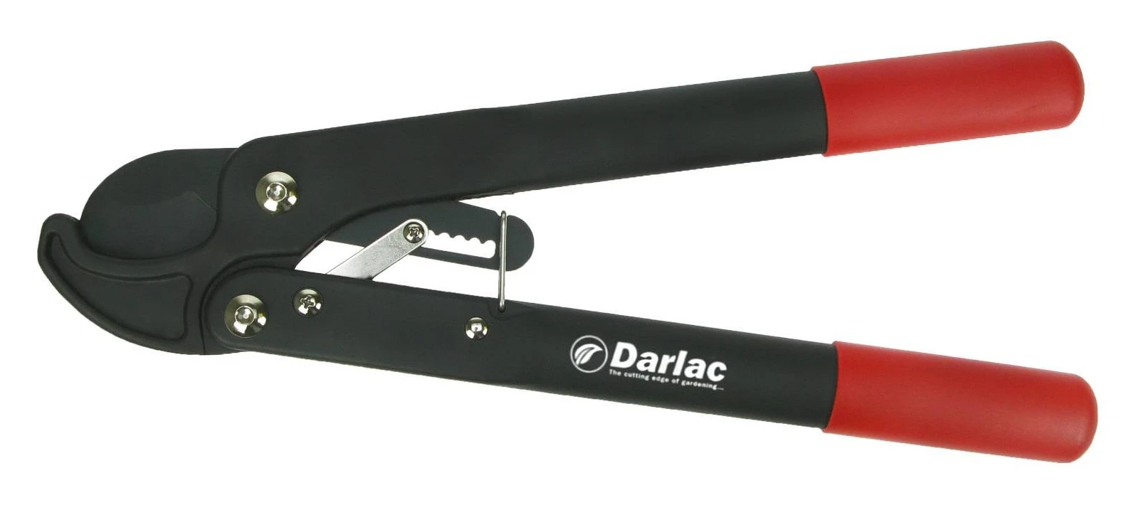 Using loppers with a ratchet mechanism reduces the amount of effort required by approximately 30%. The curved anvil holds the branch in place when cutting.