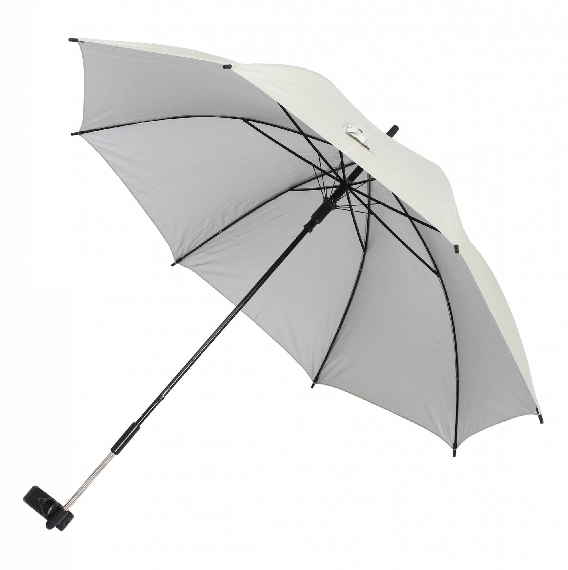 This clamp on sunshade has lots of different uses, with its posable arm allowing it to be used in many different positions and adjustable clamp it can be used on prams, chairs, golf trolleys and more.Â