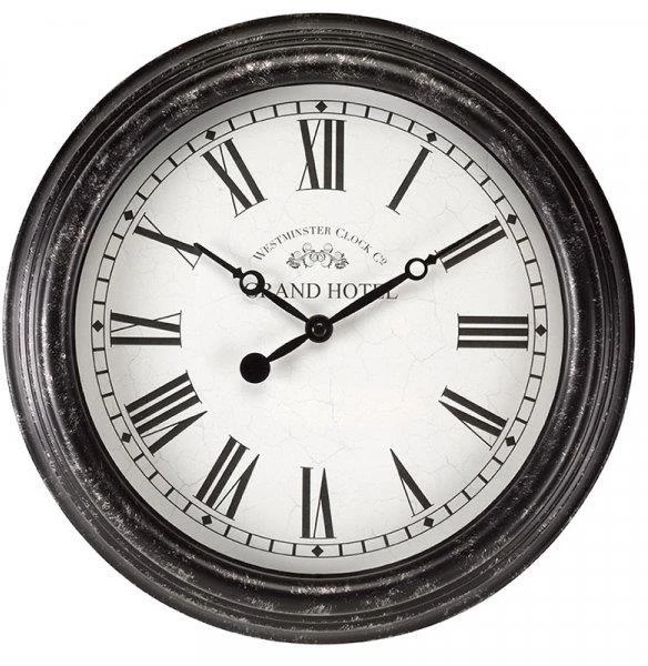 With an attractive grey finish and clear Roman numerals on a twelve-inch display face this clock would look lovely hung by your patio, porch and shed or inside your home in the kitchen, living room or conservatory.